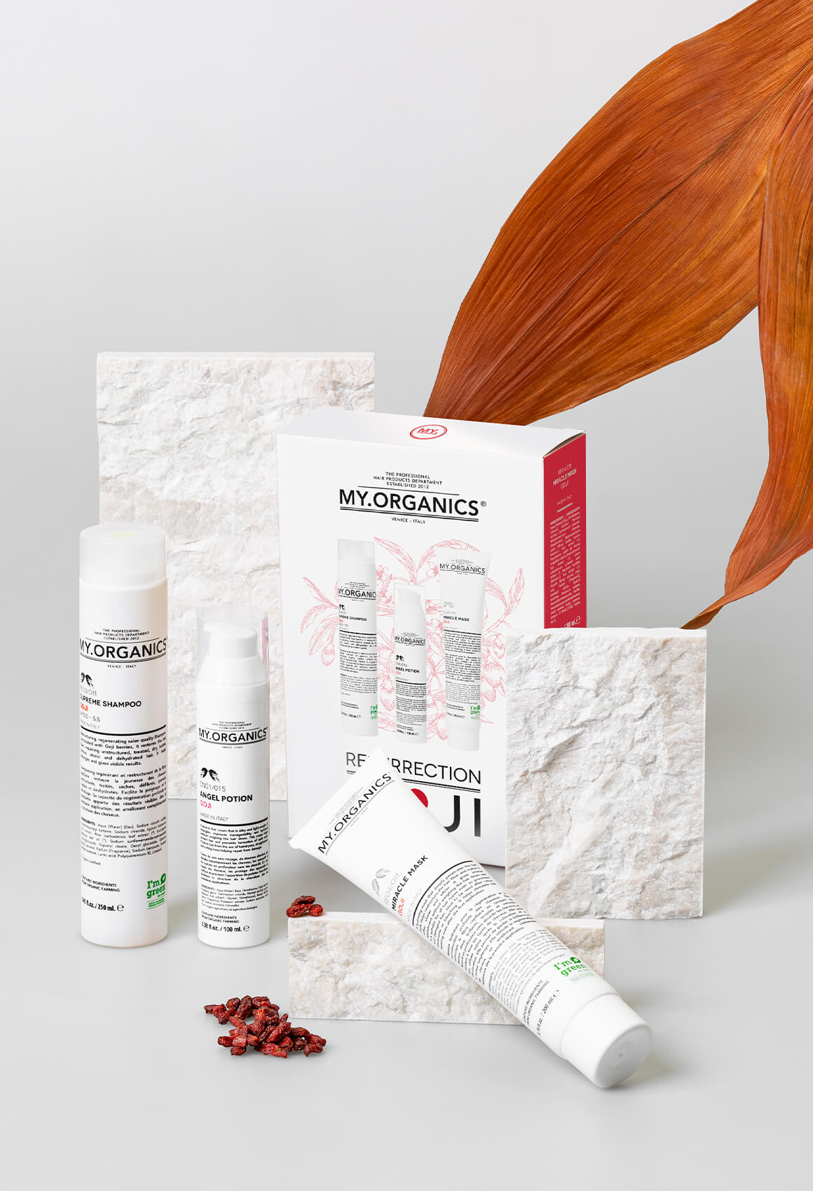 Goji (Lycium barbarum) is a superfruit rich in vitamins, minerals, and antioxidants. It revitalizes hair, scalp, and skin, promoting vitality and protection against oxidative stress. Goji enhances skin elasticity, reduces signs of aging, and nourishes hair, boosting shine and strength, making it a prized natural cosmetic ingredient.