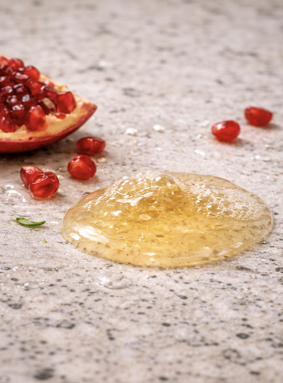 Pomegranate (Punica granatum) is antioxidant-rich, supporting regeneration, hydration, and elasticity. It nourishes scalp, strengthens hair, and protects skin youthfulness.