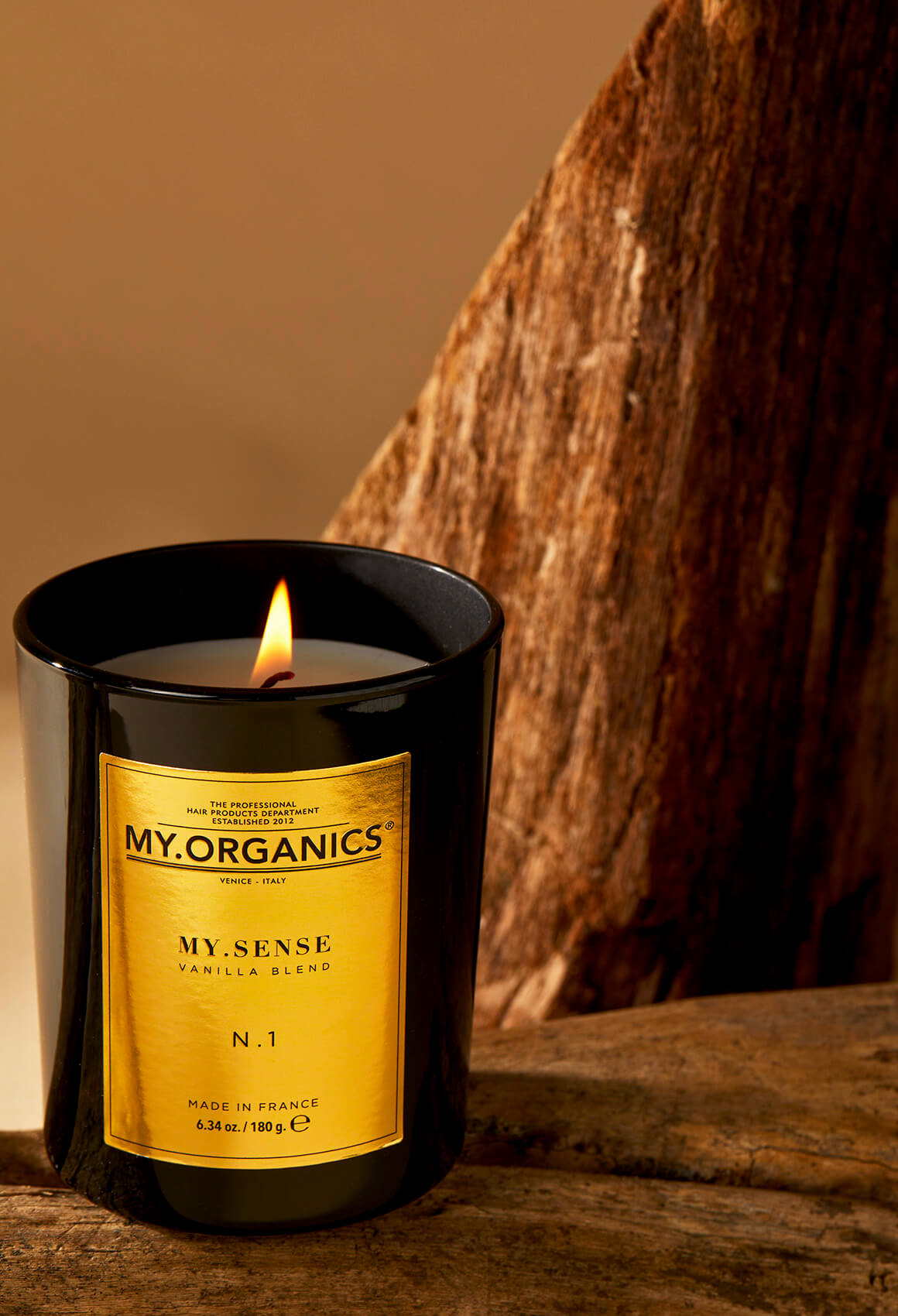 A candle crafted from 100% natural vegetable wax. Its enveloping vanilla fragrance creates a warm, welcoming, and relaxing atmosphere.